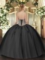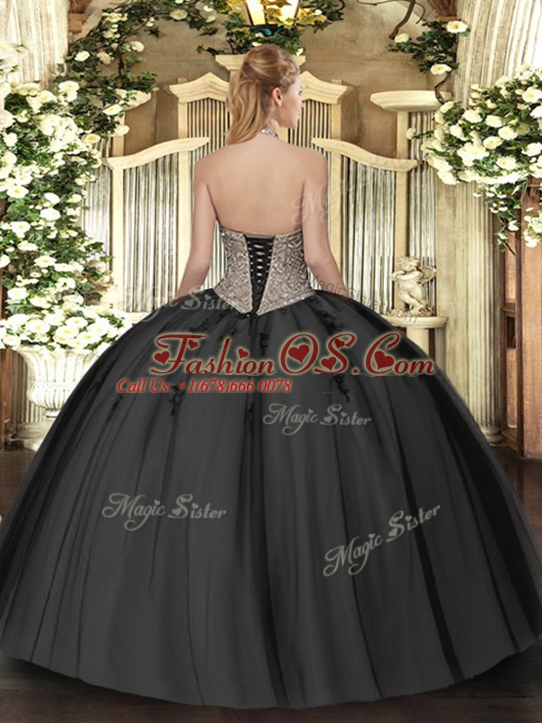 Fashionable Halter Top Sleeveless Sweet 16 Quinceanera Dress Floor Length Beading and Appliques Lavender Tulle