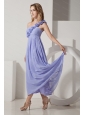 fashionable Hand Made Flowers One Shoulder Ankle-length Dama Dress