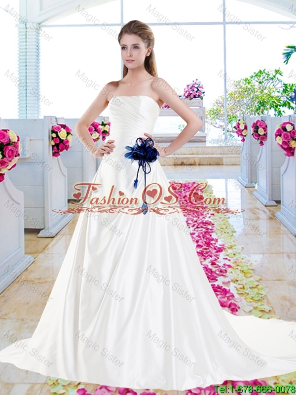 Fashionable Hand Made Flowers Wedding Gowns with A Line