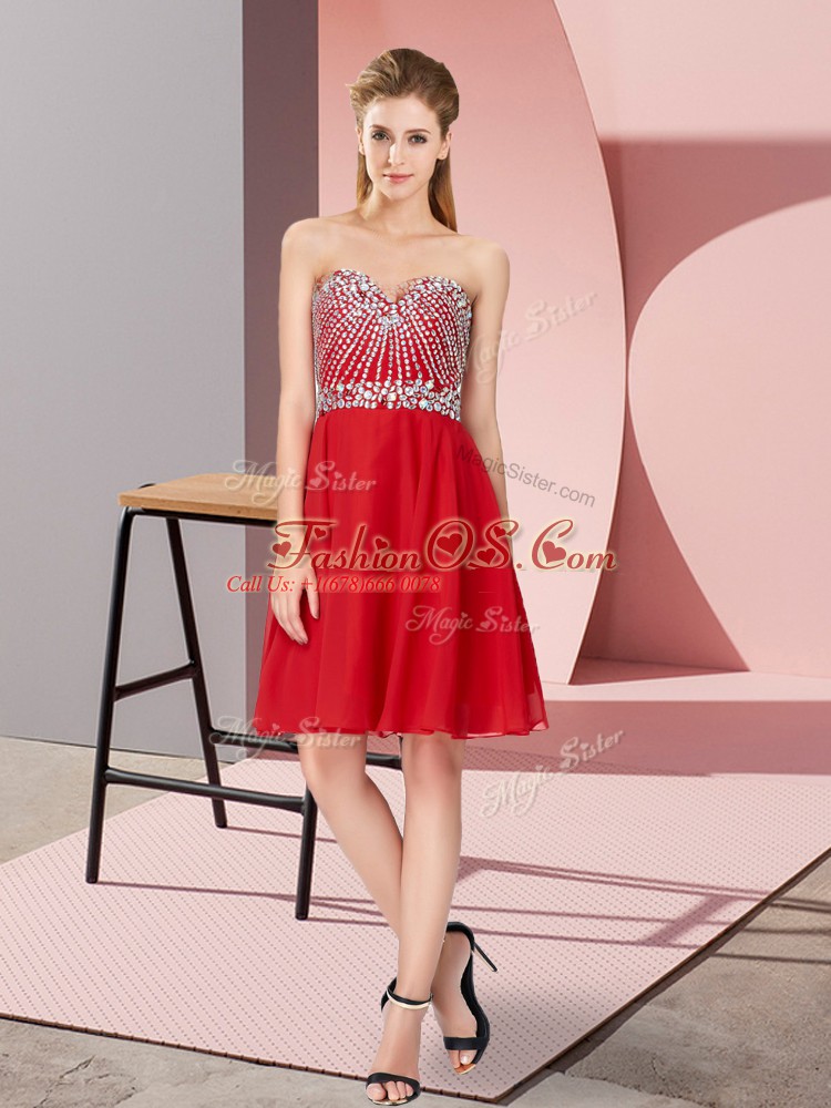 Home >  Special Occasion Dresses >  Cocktail Dresses > Fashionable Knee Length Lace Up Cocktail Dresses Red for Prom and Party and Sweet 16 with Beading