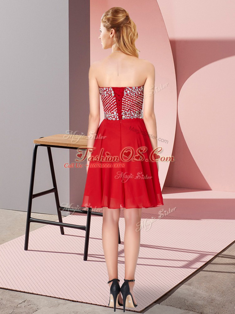 Fashionable Knee Length Lace Up Cocktail Dresses Red for Prom and Party and Sweet 16 with Beading