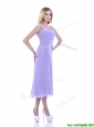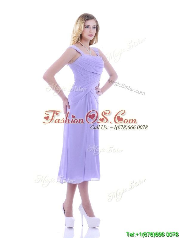 Fashionable Lavender Empire Square Bridesmaid Dress in Tea Length