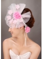 Fashionable Light Pink Tulle Hand Made Flowers Beading Fascinators For Party
