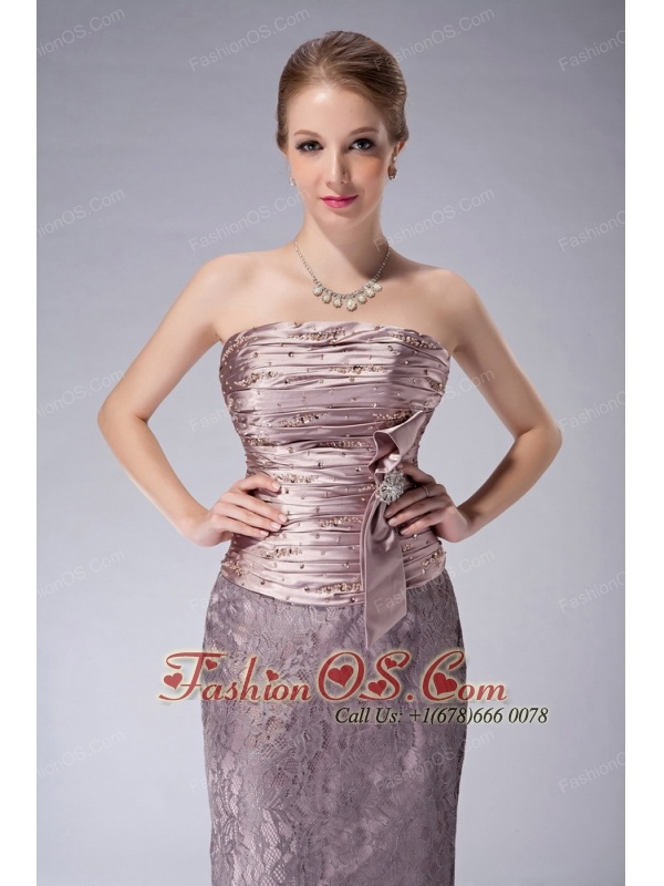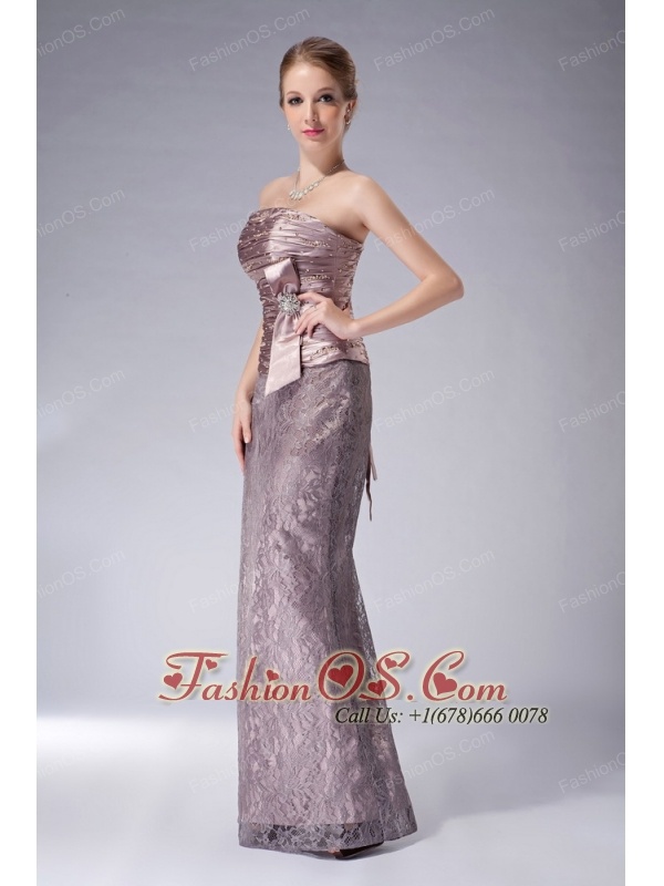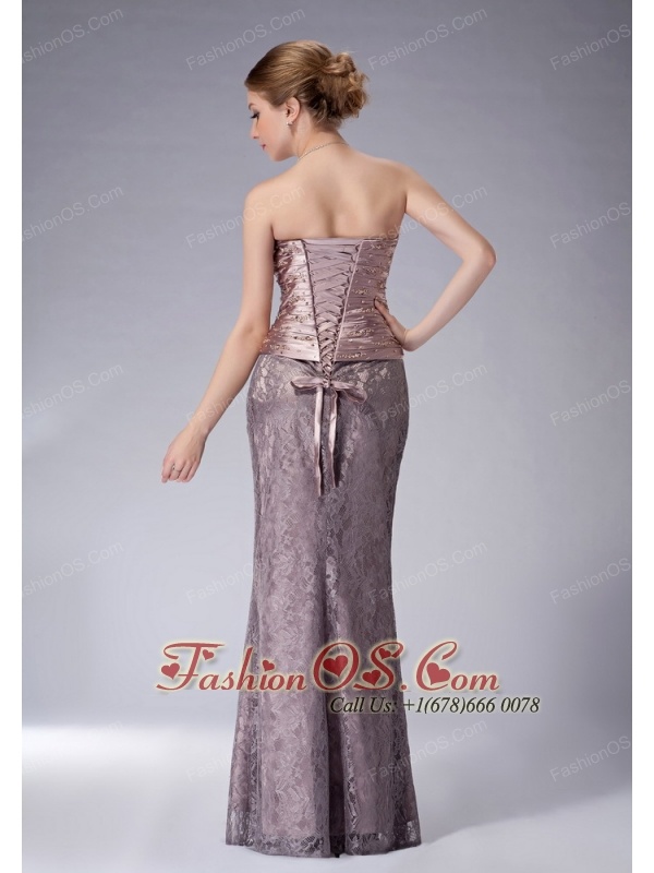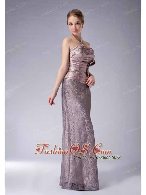 Fashionable Lilac Column Strapless Mother Of The Bride DressLace Ruch Floor-length