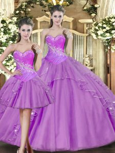 Fashionable Lilac Sweetheart Neckline Beading 15 Quinceanera Dress Sleeveless Lace Up