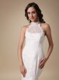 Home >  Wedding Dresses >  Elegant Wedding Dresses > Fashionable Mermaid High-neck Brush Train Taffeta and Lace Wedding Dress