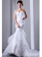 Fashionable Mermaid Spaghetti Straps Wedding Dress Ruffles Brush Train Satin and Organza