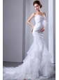 Home >  Wedding Dresses >  Affordable Wedding Dresses > Fashionable Mermaid Spaghetti Straps Wedding Dress Ruffles Brush Train Satin and Organza