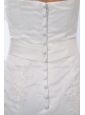All eyes should be on you on your wedding day and in this fabulous dress, they certainly will be. It features a beautiful strapless bodice with a straight neckline and intricate lace overlay across the skirt. The mid-section of the dress is decorated with a lovely sash. The skirt features a gorgeous lace overlay that has been accented with more embroidery and appliques. The back of the dress extends into a lovely sweeping train that creates a dramatic effect when worn. Fabric covered buttons make up the closure and the hidden zipper secures the dress in place.