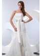 Fashionable Mermaid Wedding Dress Strapless Court Train Satin and Lace Bow