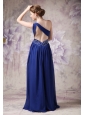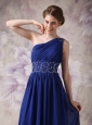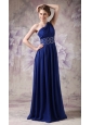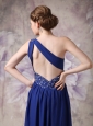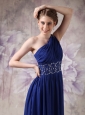 Home >  Evening Dresses > Fashionable Navy Blue Evening Dress Empire One Shoulder Chiffon Beading Brush Train