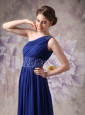 Fashionable Navy Blue Evening Dress Empire One Shoulder Chiffon Beading Brush Train