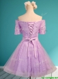 Fashionable Off the Shoulder Short Prom Dresses with Bowknot