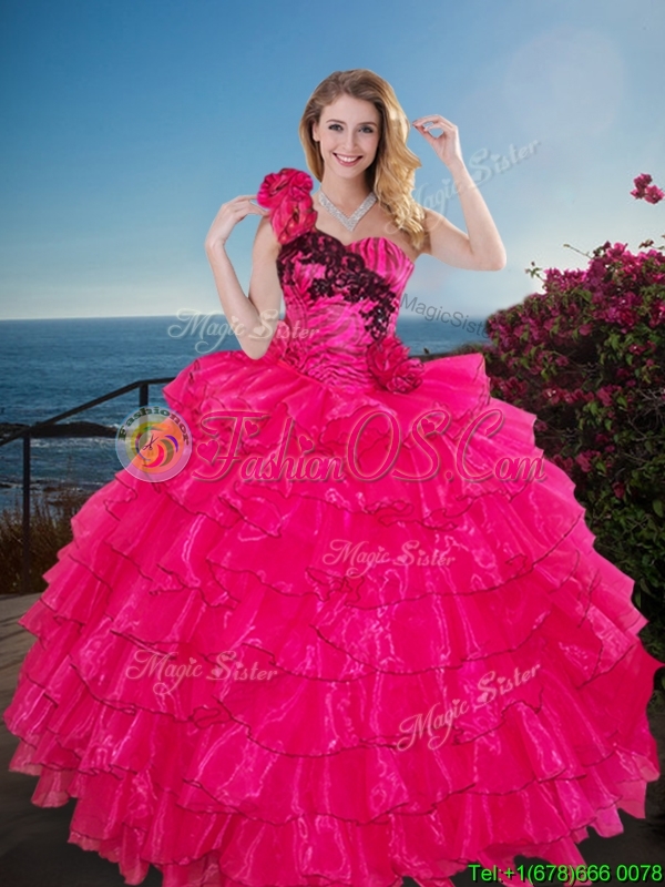 Fashionable One Shoulder Sweet 16 Gown with Ruffled Layers and Handmade Flowers