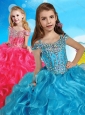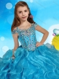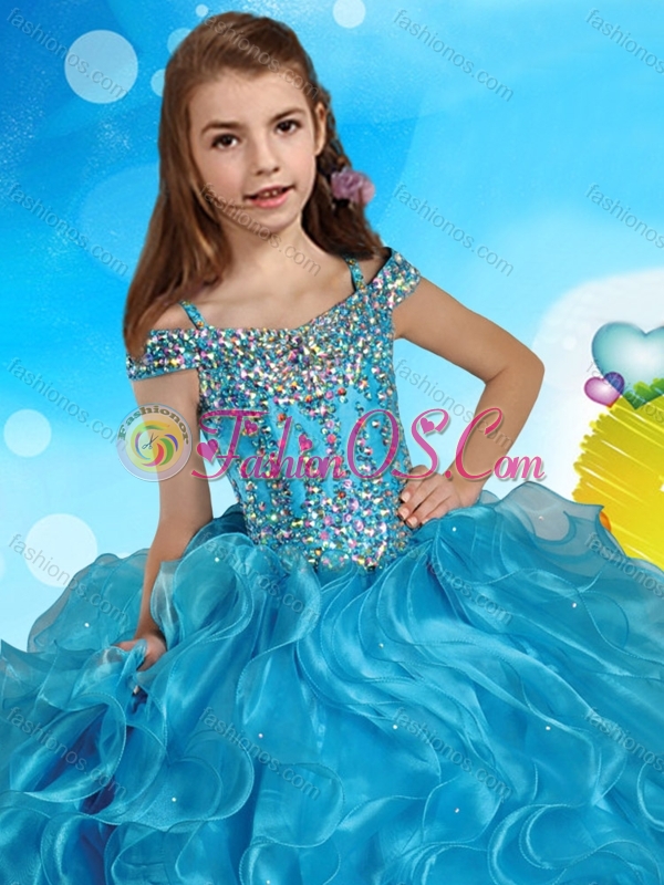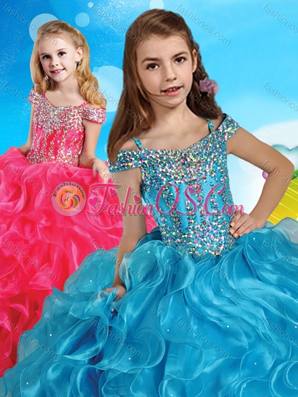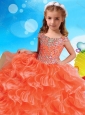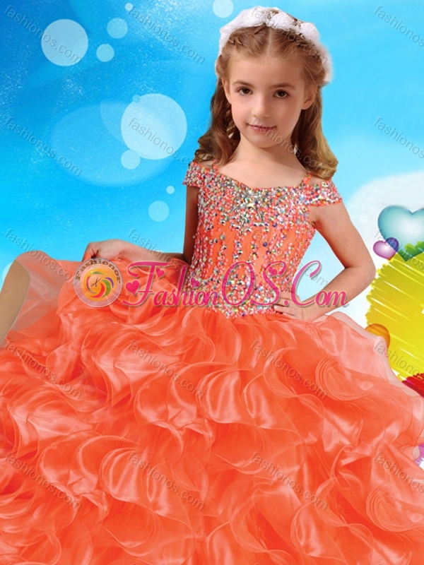 Fashionable Orange Little Girl Pageant Dress with Beaded Decorated Cap Sleeves