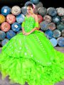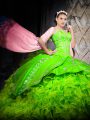 Fashionable Organza Lace Up Quince Ball Gowns Sleeveless With Brush Train Embroidery and Ruffles