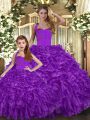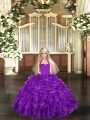 Fashionable Purple Halter Top Neckline Ruffles Quinceanera Dress Sleeveless Lace Up