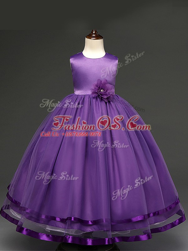 Fashionable Purple Little Girls Pageant Dress Wedding Party with Hand Made Flower Scoop Sleeveless Zipper