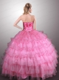 Fashionable Rose Pink Quinceanera Dresses with Embroidery and Ruffles Layers