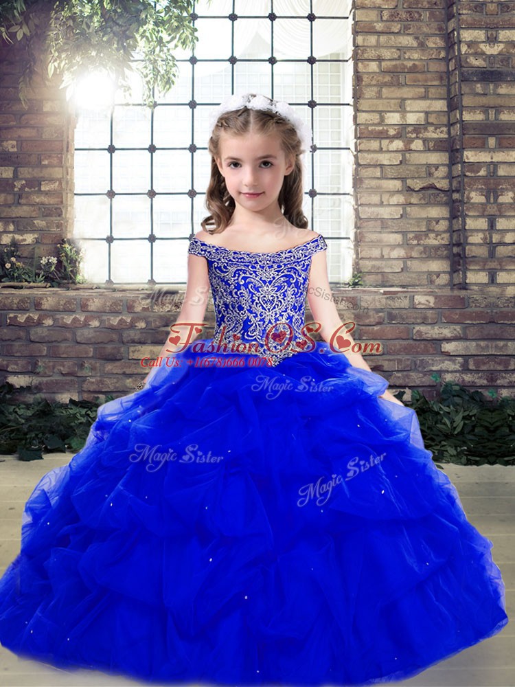 Fashionable Royal Blue Sleeveless Floor Length Beading and Pick Ups Lace Up Little Girls Pageant Dress