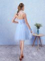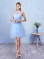 Fashionable Ruching Bridesmaid Dress Blue Lace Up Sleeveless Knee Length