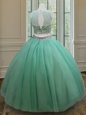 Home >  Quinceanera Dresses >  Custom Made Quinceanera Dresses > Fashionable Scoop Floor Length Apple Green 15th Birthday Dress Tulle Sleeveless Beading
