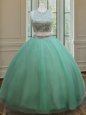 Fashionable Scoop Floor Length Apple Green 15th Birthday Dress Tulle Sleeveless Beading