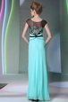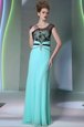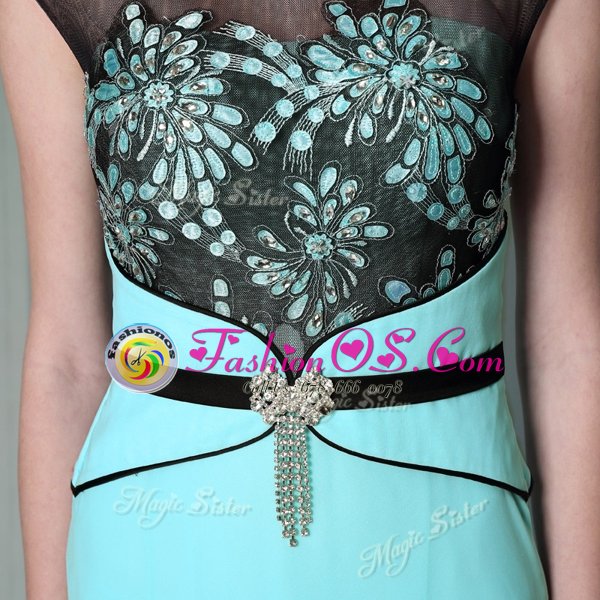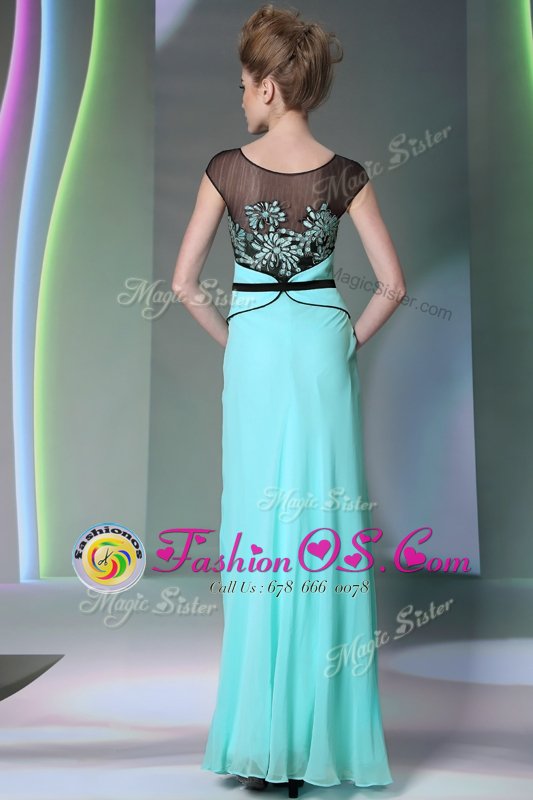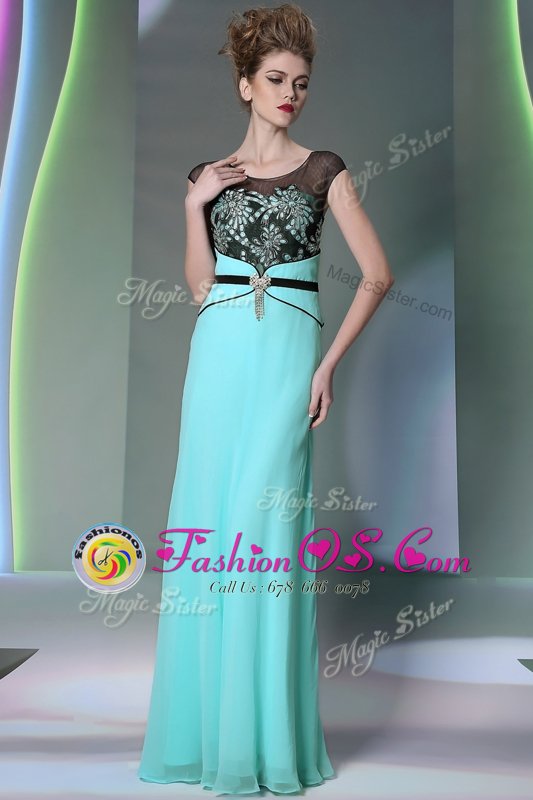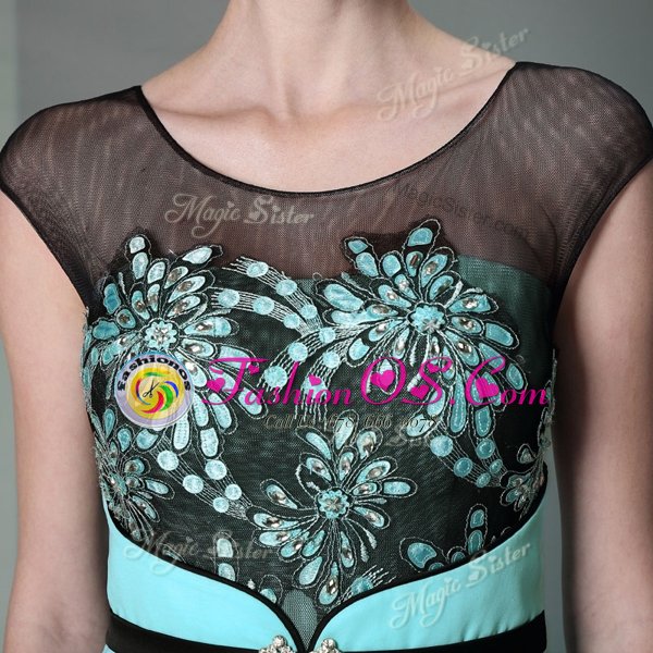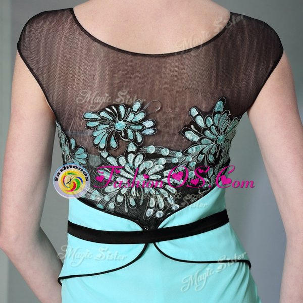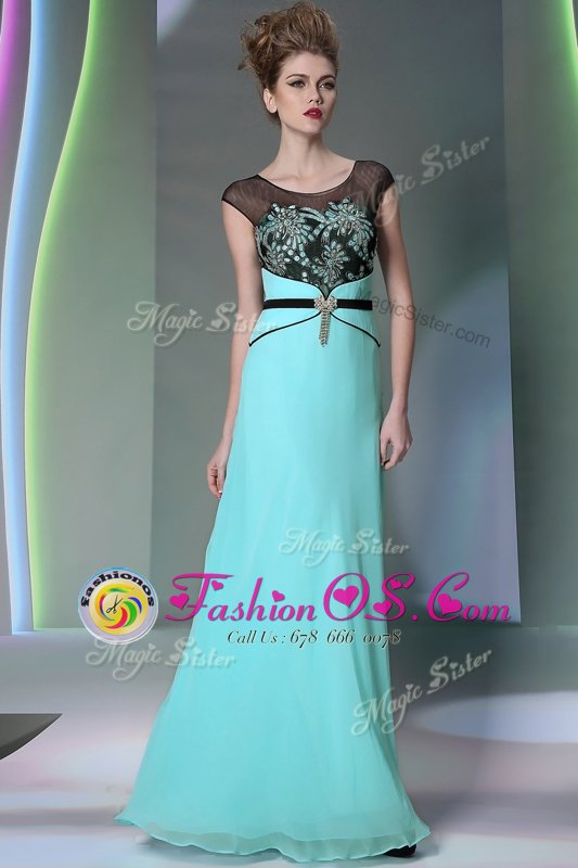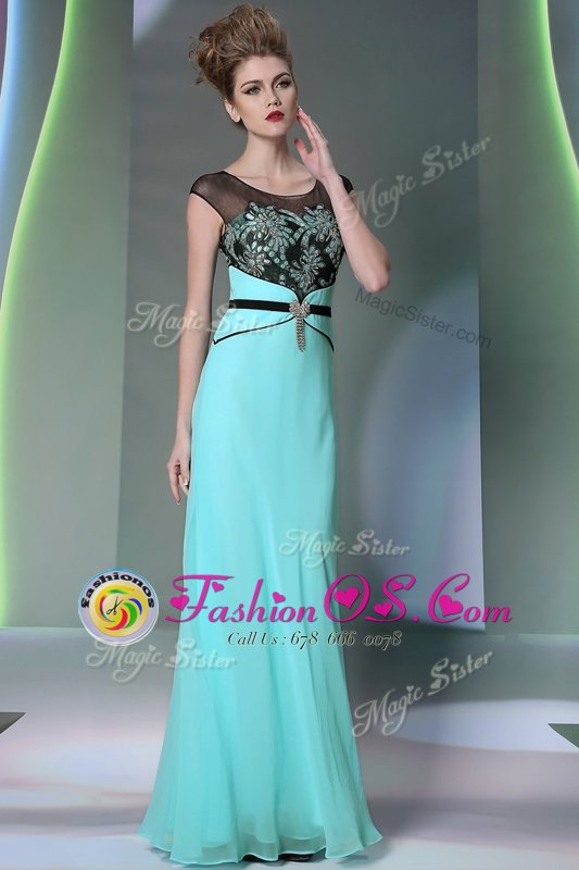 Fashionable Scoop Floor Length Zipper Homecoming Dress Teal and In for Prom and Party with Appliques