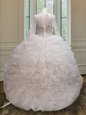 Fashionable See Through Beading and Ruffles and Pick Ups Sweet 16 Dress Red Lace Up Sleeveless Floor Length