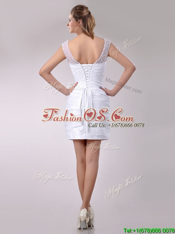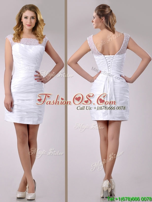 Fashionable See Through Scoop Taffeta Short Wedding Dress with Beading