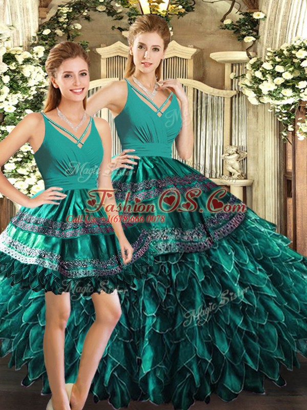 Fashionable Sleeveless Backless Floor Length Appliques and Ruffles Quinceanera Gown