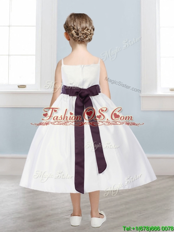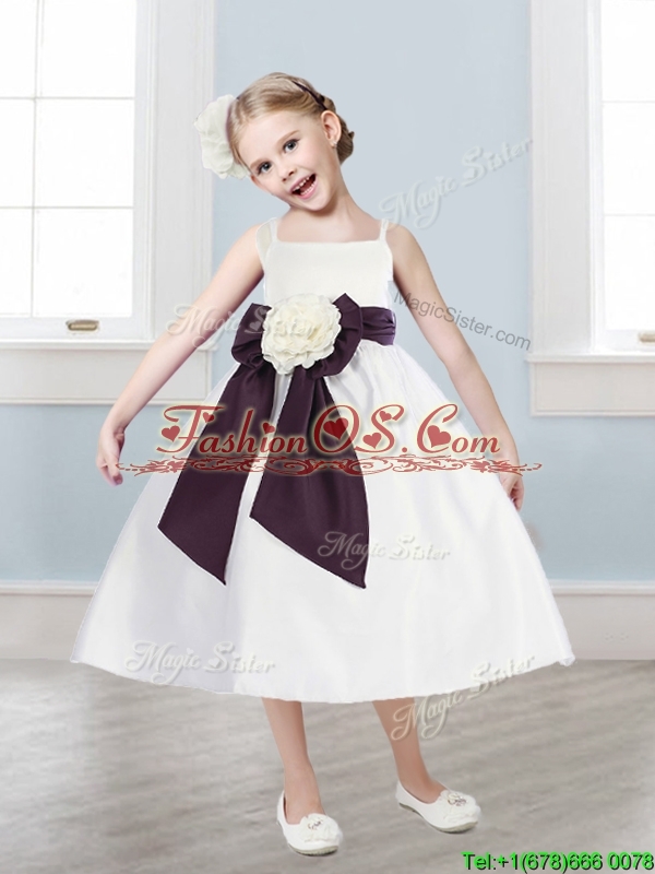 Fashionable Spaghetti Straps Little Girl Pageant Dress with Hand Made Flowers and Sashes