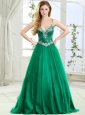 Fashionable Spaghetti Straps Royal Blue Evening Dress with Beading and Sequins
