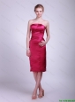 Fashionable Strapless Knee Lengt Prom Gowns in Wine Red 2015