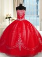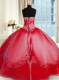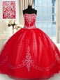 Home >  Quinceanera Dresses >  Perfect Quinceanera Dresses > Fashionable Strapless Sleeveless Sweet 16 Quinceanera Dress Floor Length Beading and Embroidery Red Tulle