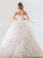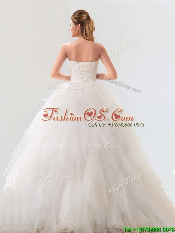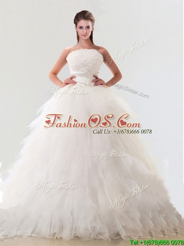 Fashionable Strapless Tulle Wedding Gown with Beading and Ruffles