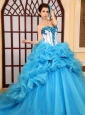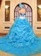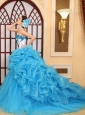 Fashionable Sweetheart Beading Aqua Blue Chapel Train Ball Gown Quinceanera Dress