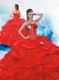 Fashionable Sweetheart Red 2015 Quinceanera Dresses with Beading and Pick Ups