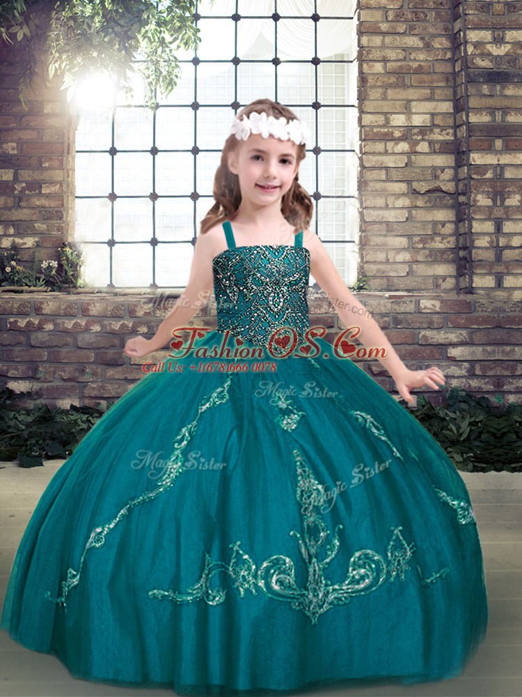 Home >  Special Occasion Dresses >  Beautiful Kids Pageant Dresses > Fashionable Teal Tulle Lace Up Custom Made Pageant Dress Sleeveless Floor Length Beading