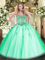 Fashionable Tulle Sweetheart Sleeveless Lace Up Beading and Appliques Quinceanera Gown in Apple Green