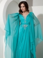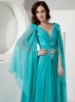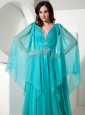 Home >  Evening Dresses > Fashionable Turquoise Empire V-neck Evening Dress Chiffon Beading Court Train