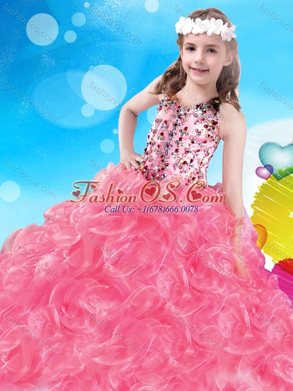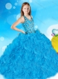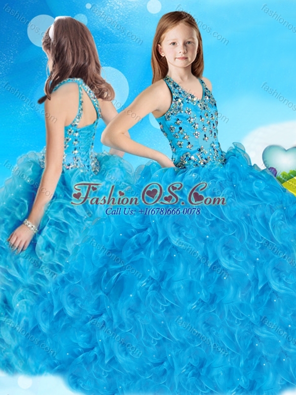 Fashionable V Neck Big Puffy Little Girl Pageant Dress with Beading and Ruffles