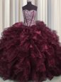 Home >  Quinceanera Dresses >  Luxurious Quinceanera Dresses > Fashionable Visible Boning Bling-bling With Train Ball Gowns Sleeveless Burgundy Quinceanera Dresses Brush Train Lace Up