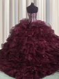 Fashionable Visible Boning Bling-bling With Train Ball Gowns Sleeveless Burgundy Quinceanera Dresses Brush Train Lace Up