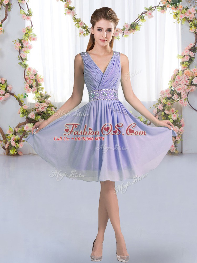 Fashionable V-neck Sleeveless Zipper Quinceanera Court Dresses Lavender Chiffon