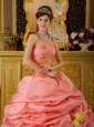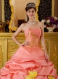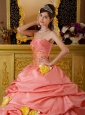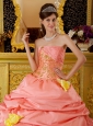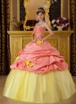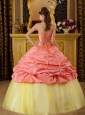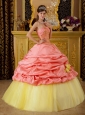 Home >  Quinceanera Dresses >  Sweet 16 Dresses > Fashionable Watermelon and Yellow Sweet 16 Dress Strapless Taffeta and Tulle Beading Ball Gown