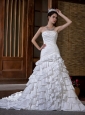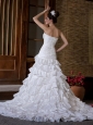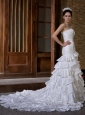 Home >  Wedding Dresses >  Beautiful Wedding Dresses > Fashionable Wedding Dress Mermaid Strapless Appliques Ruffled Layers Chapel Train Taffeta
