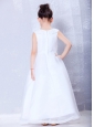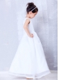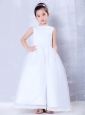 Fashionable White A-line Bateau Beading Flower Girl Dress Ankle-length Organza