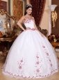Home >  Quinceanera Dresses >  Perfect Quinceanera Dresses > Fashionable White Quinceanera Dress Strapless Organza Embroidery Ball Gown