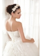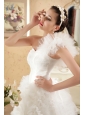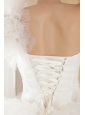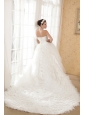 When you see this white wedding dress, you can't believe your eye, how amazing the creation! The fitted bodice is accented with one shoulde made of flower-shaped tulle and a modified sweetheart and a row of beaded botton, as if you can your bodice. The A-line skirt is made of every slice of little tulle combined and a chapel train, assuming the besieged queen when you put it on. The back features a corset-style closure that ensures a perfect fit.